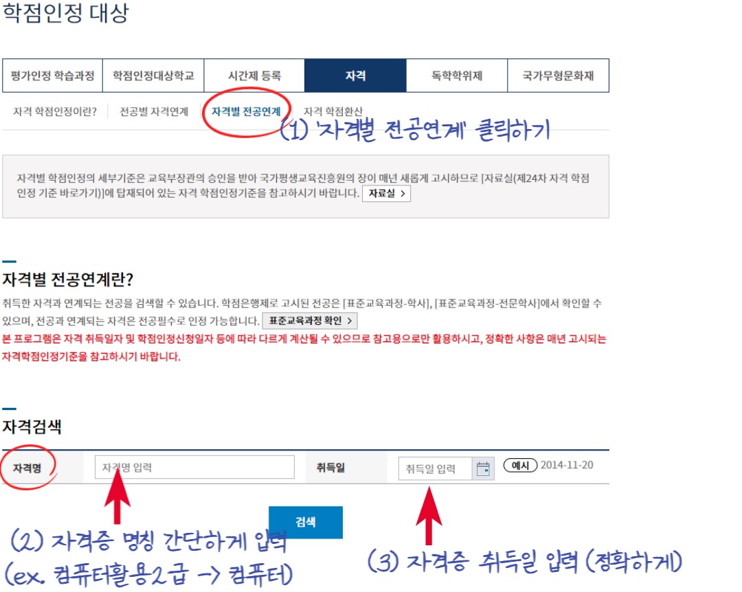 위의 세 가지만 알아두면 자격증 학점 관련 내용을 좀 더 쉽게 이해하고 체크할 수 있을 것이다.